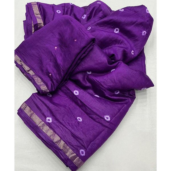 Be the first to review “Violet Bandhani Digital Printed Linen Cotton Saree”