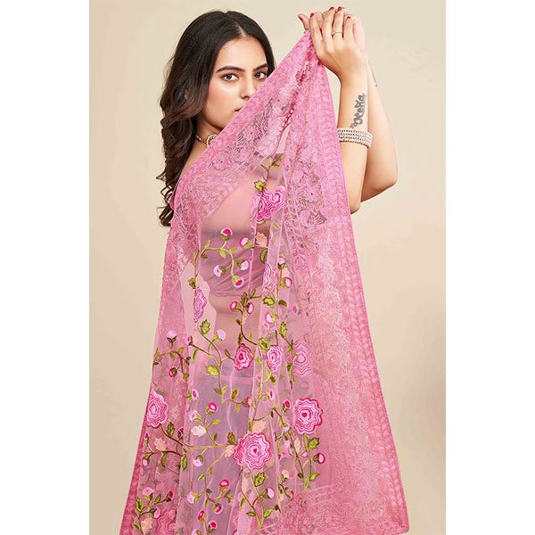 Pink Floral Embroidered Party Wear Saree in Net Fabric with Lavish Detailing