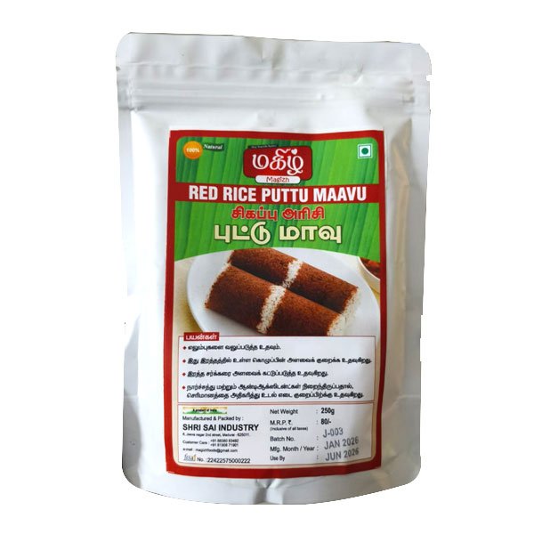 சிகப்பு அரிசியால் தயாரிக்கப்பட்ட இந்த புட்டு மாவு, நார்ச்சத்து, இரும்பு மற்றும் இயற்கை ஊட்டச்சத்து நிறைந்தது. மென்மையான, சுவையான புட்டு செய்ய ஏற்றது மற்றும் தினசரி ஆரோக்கிய உணவாக பயன்படுத்தலாம்